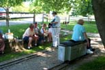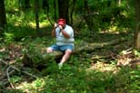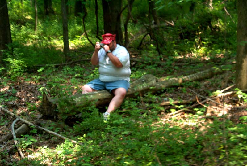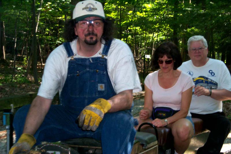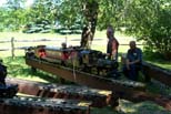 My son Bill Deptowicz sitting behind Bill Bodemer had his first train ride and was impressed with the track. Caught LSLS member Don Gray sitting on a log at Big Bend Bridge taking pictures. |