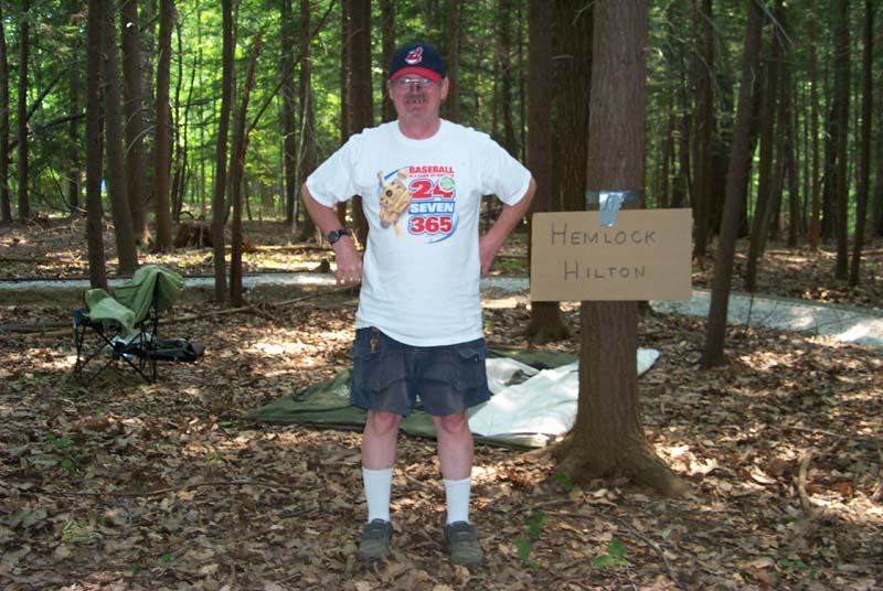 Rick Nagy camped all week for the work sessions preparing the track for the Open Meet and was our security also. His camp got dubbed the "Hemlock Hilton" which he took down later in the day on Sunday |