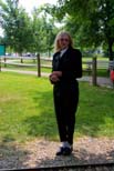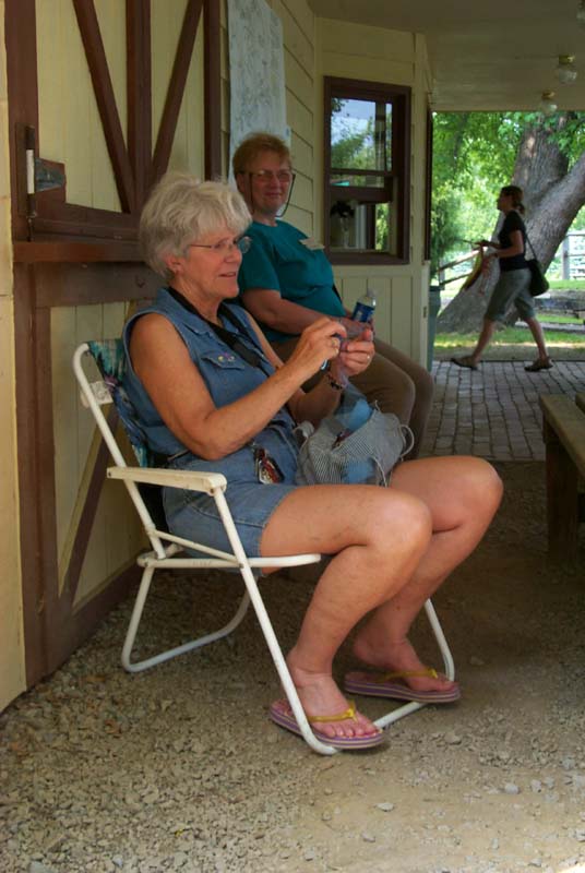 Jonathan Shaffer and Edith Hacker at the station discussing todays events. Kitty Shriver relaxing as she makes up the pot scrubbers that she sells for the club at our Public Runs. |