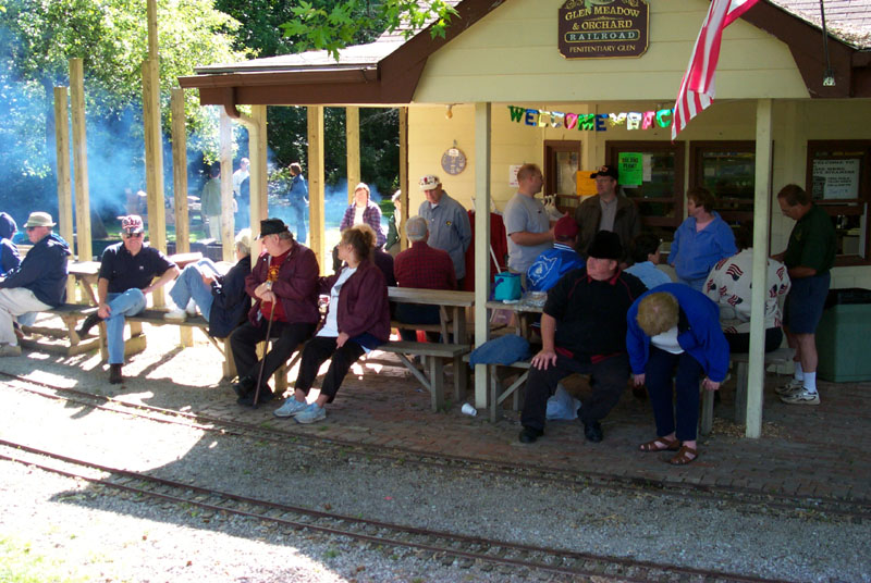 Jon Jaros and Tom Bee on the Hudson pulling out of the station. The crowd gathering at the station is getting larger in anticipation of the cookout |