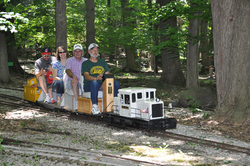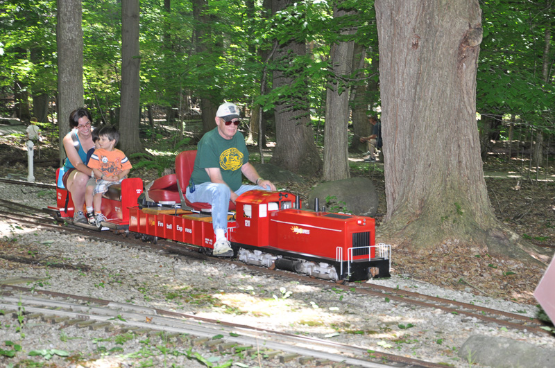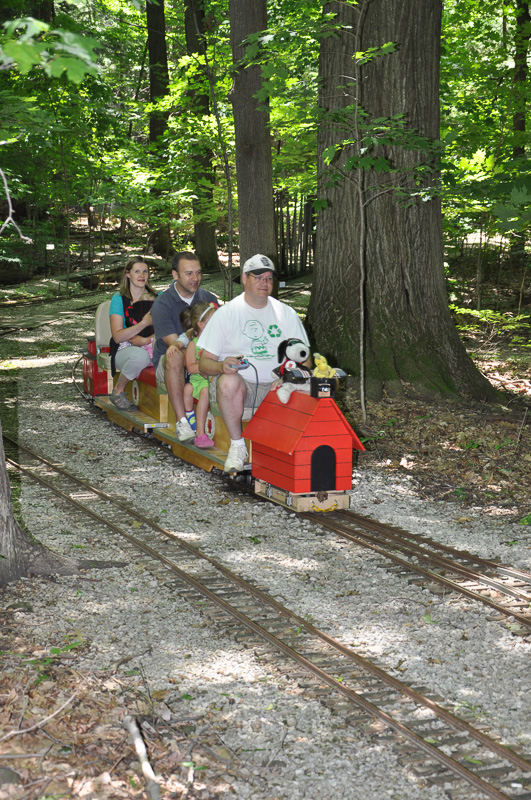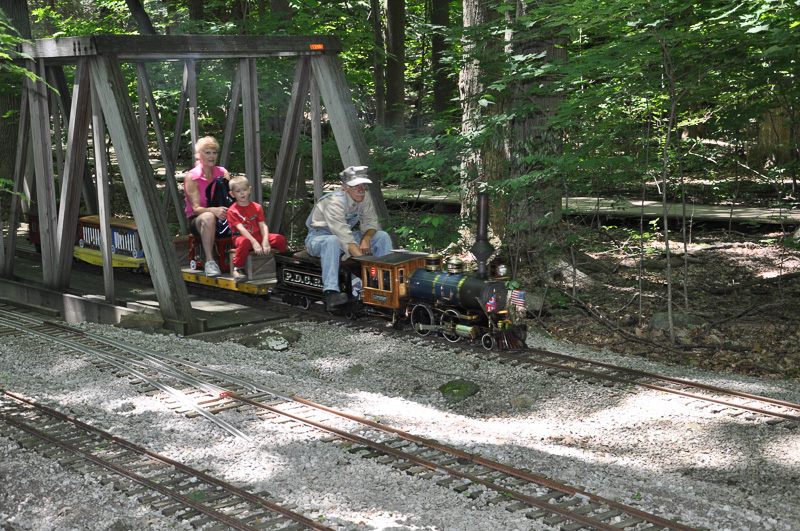 Ken and all his passengers give a wave as they pass over Cider Bridge on the way towards Festival Bridge and soon, Shriver Station. After the public run Ethan was engineer for the Snoopy train with grandpa Bill behind him and his cousin Kaitlin Moorhouse. |