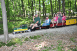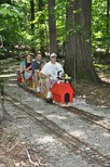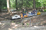 Don with his SW9 as he rumbles over the Big Bend Bridge with his five car consist loaded with passengers. Caught Dick Clark as he emerges from the Covered Bridge on his way towards Zip Junction which is the midpoint of the ride. |