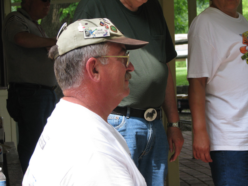 The trains back up at the loading area waiting for passengers to be loaded with Ted Nylands interurbans, Johns' Snoopy train and Rex Shriver waiting. A concentrating Dave Foster as he counts passengers loading the trains. |
