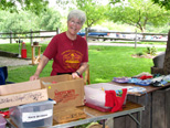 Robbi talks to the last three riders waiting in the line for a train to pull up to the loading area. Kitty Shriver is all smiles after the run and she has started to pack up her wares that she sells at the runs. |