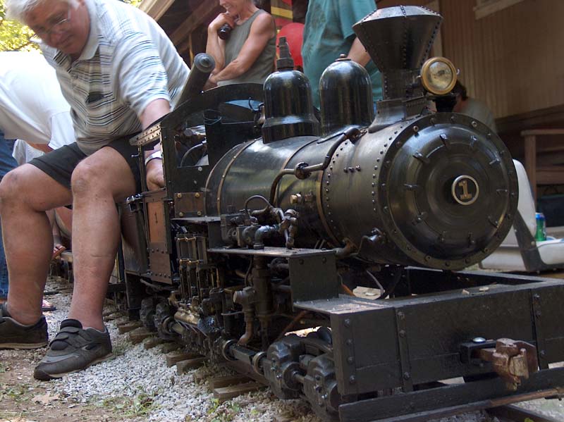 More members of our club in attendance, Dick Philpott, Jeff and Cindy Klein take time out for the camera. A three quarter shot of Chan's rebuilt shay from the front. |