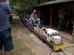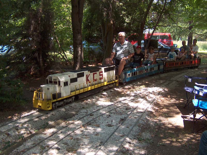 Clyde's train leaving the station with a load of passengers driven by a guest. Dick Clark, Mark Ross, Mary Lou Schmidt, Dave Foster, Howard Murphy and Paul Emch all LSLS members. |