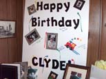 Deb and Bill Bodemer pose for the camera as the country gentleman from the deep South is all smiles. Well it looks that way.... The large placard on display with pictures of Clyde in earlier years. |