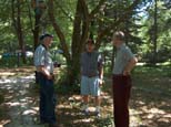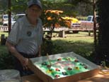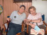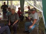 Chan Bleil behind his Shay that he has just rebuilt. Kitty and Rex Shriver sitting in the shade enjoying the activities. |