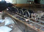 Ron Trenhaile, Jerry and Sue Bell with Chet Roberts and his engine at the steaming bay. Lou Geis, Jr brought the chassis for a 4-6-4 that his Dad, Don, had been building. |