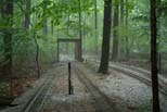 The new trench under the log is working. Heading back to the station for supper this view of the Truss Bridge from Fern in the rain with the woods all steamy in appearance. |
