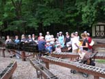 Another load of passengers leaving the station with Mike as engineer. Rick leaving with the last load of attendees that participated in the Tremendous Trains Program. Thanks Roger! |