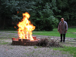 When I got to the track today I found it had rained very hard during the night but Edith Hacker was burning up the branches that she had picked up around the station. The fire was really roaring and the wind seem to lift the flames to new heights. |