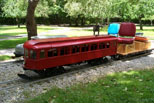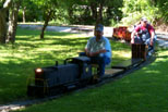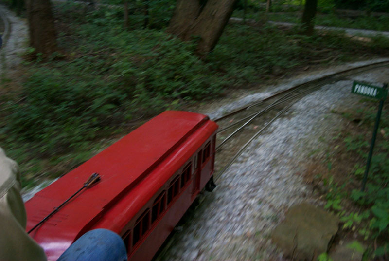 Members and guests in front of our station waiting to make a run out on the tracks. Ann Johnson leaving the station on George Woodling's electric powered trolly car |