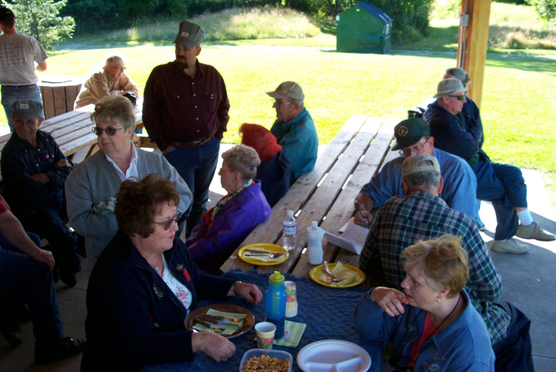 The group is gathering at the pavillion for the cookout. We were fortunate to have good weather for the day |
