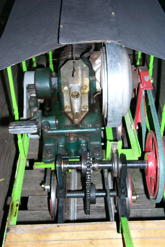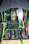 A close up view of the drive system George used to get power to the wheels. Showing the stack extension George uses to keep some of the exhaust out of your face. |