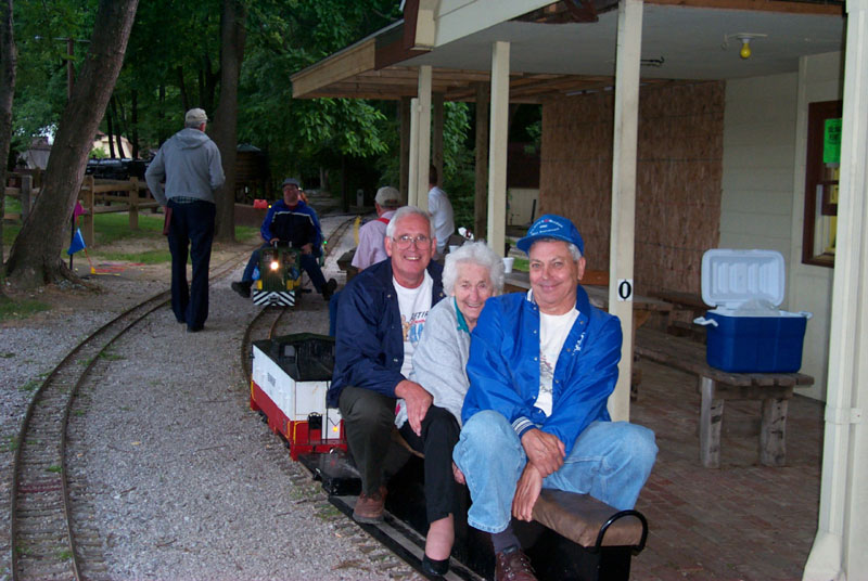 Jane Blackman, Olga Deptowicz and Edith Hacker pose for the photographer. Daryl Metcalf with Bill Bodemer behind pull in behind the station on the old "Orchard Loop" |