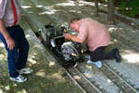 Mark Ross, a new member, who has scratch-built a Galloping Goose.The Rio Grande Southern No 2 which is powered by a 5 hp Honda driving a hydraulic pump |