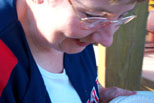 Ted and Marie Nyland brought their ice cream maker so we had home made ice cream for desert. Robbie tried to escape rhe camera but she didn't succeed. |
