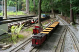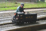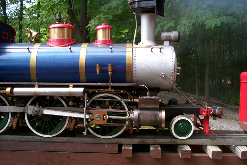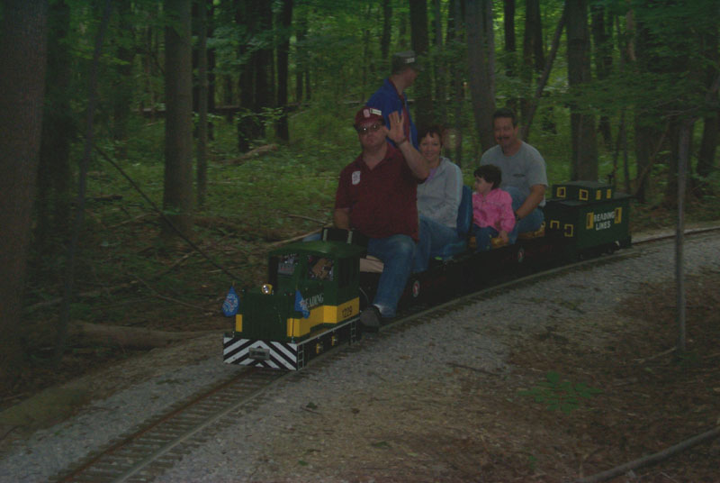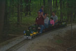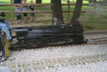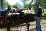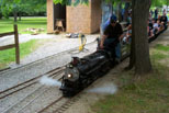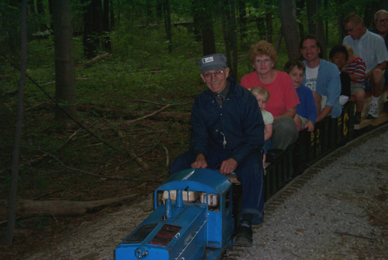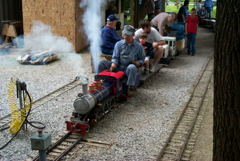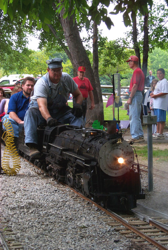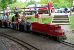 Jerry Bell and his grandson Buddy taking a test run around the track before hauling the public. A low frontal pic of the Hudson at the station while loading passengers |
