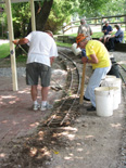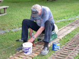 It turned out to be alot of existing ballast and soil that got removed so we could lower the track by 2 1/2 inches. Rick took the photo of Bill Deptowicz the photographer taking a breather, just not as young as I used to be. |