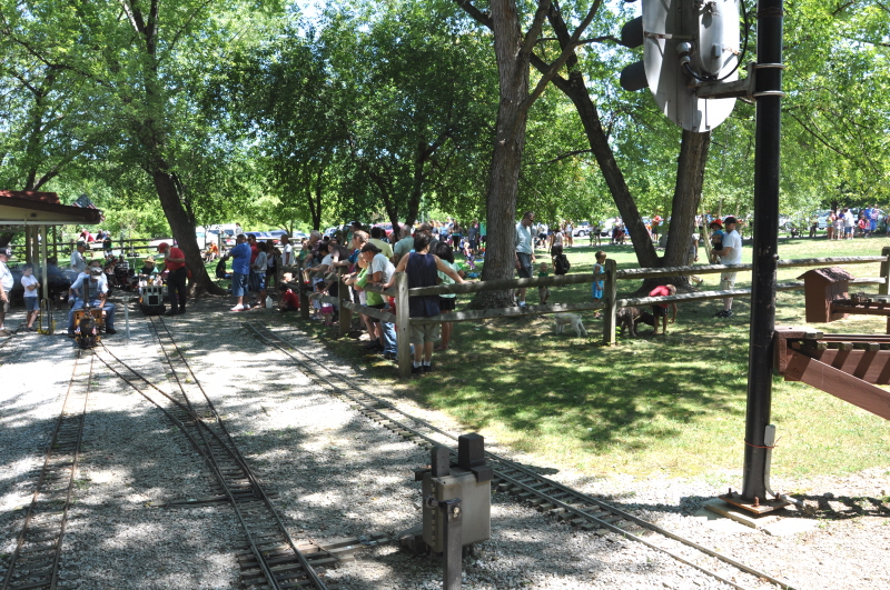 We couldn't have asked for a more beautiful day to have a run and you can see the line that has formed going all the way up to the right that there's a lot of people waiting to ride the trains. With a wisp of smoke rising from "Lynn's" stack she departs the station with Skip at the controls on another run. |