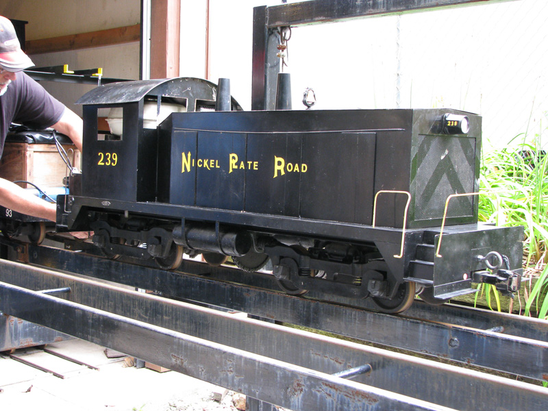 On the car lift transfer table the maintenance crew were changing the brushes on our track sweeper as the originals had worn down too far to be effective. The engine maintenance crew were charging the battery on the GP38. |