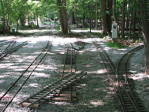 Went over by Horrendous to see how Jerry Bell, Ron Malinowski and Dave Woldman placed a couple sections of track that's headed for a connection to the Branch Line. A view from the mainline looking towards the station at our new siding that has been barricaded until the switch is adjusted. |