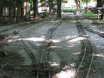 Matthew sweeps down the track to level the ballast to the top of the ties as Tom smooths out the edges beyond the ends of the ties with a shovel. Well the siding is all ballasted except for the very end. |