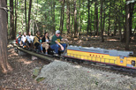 Next to come by was John with Frank on the rear as his conductor as they passed over Gulch Bridge and will soon be ascending the grade with his passengers. Taken from the inside of the curve, Richard came by with his passengers at the same location. |