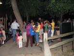 Karl pulling up after unloading his train and the evening activities are coming to a close. Austin Tapolyai, Peti Tapolyai, Amy, John and Ethan Deptowicz ride behind Logan Tapolyai on the Snoopy train. |