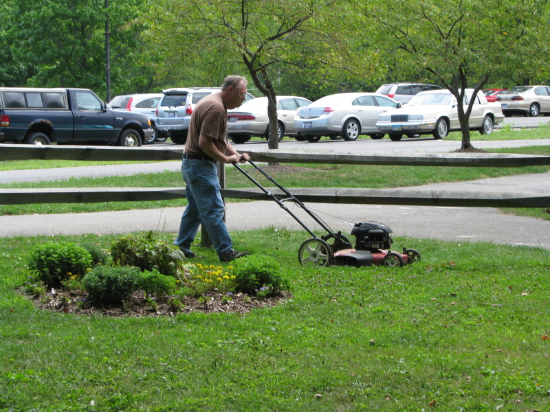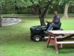 Steve Zaken is cutting the grass on the inclined area in front of the station. Meanwhile George Raby was on the riding mower cutting the grass behind the station. |