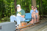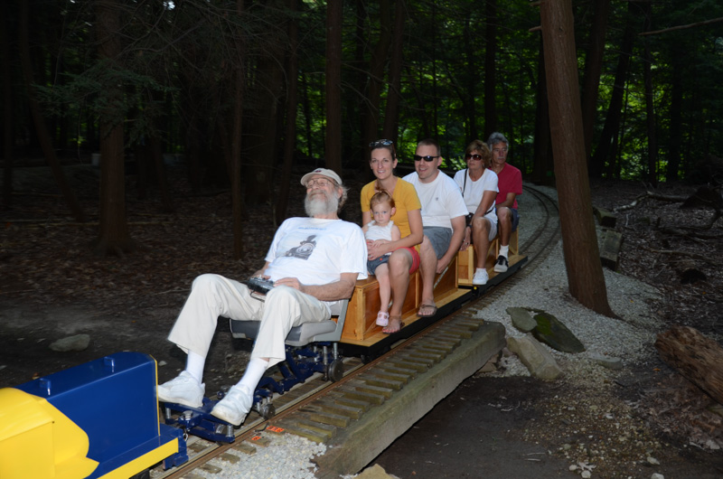 Standing next to the Big Bend Bridge you can get some good low angle shots of the trains as they go by and here we have John with the Park engine as he heads for points West. Next to come along was Judson with his train with the rumbling of the wooden deck as his electric powered engine and the riding cars passed over it. |