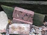 A view looking from the end of the car, these are Tom be trucks with brakes so we'll see if the shims help. The bricks that were removed from the end of the car and there are still another three in the car. |