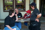 Kitty Shriver and Rachel Beardslee "man" the table where crafts and candy are sold. Ted with another load of passengers. The line didn't seem to get any smaller today |