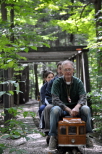 Rick arriving back at the station with a full load of passengers and Lew as conductor. A smiling Lew on the new conductor car as the train pulls ahead to the loading area. |