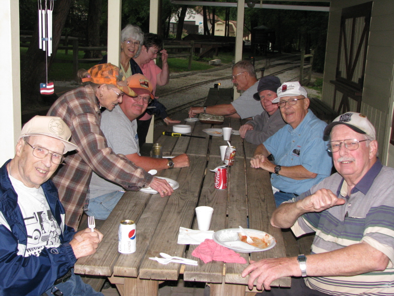 With a huff and a puff he blew his candles out. Rex Shriver, Edith, Rick, Kitty, Robbi, Jerry, Lew, Bill Besselman, Dick and the photographer, Bill, were in attendance to celebrate Jerry's birthday. |