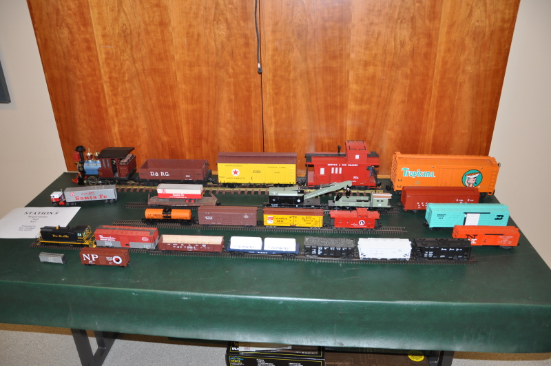 A close-up view of the difference in the sizes of scale between "G" and "N" that was set up just for the scouts. Ken Vendlinger brought in a switching layout challenge and here a scout is attempting to shuttle cars. |