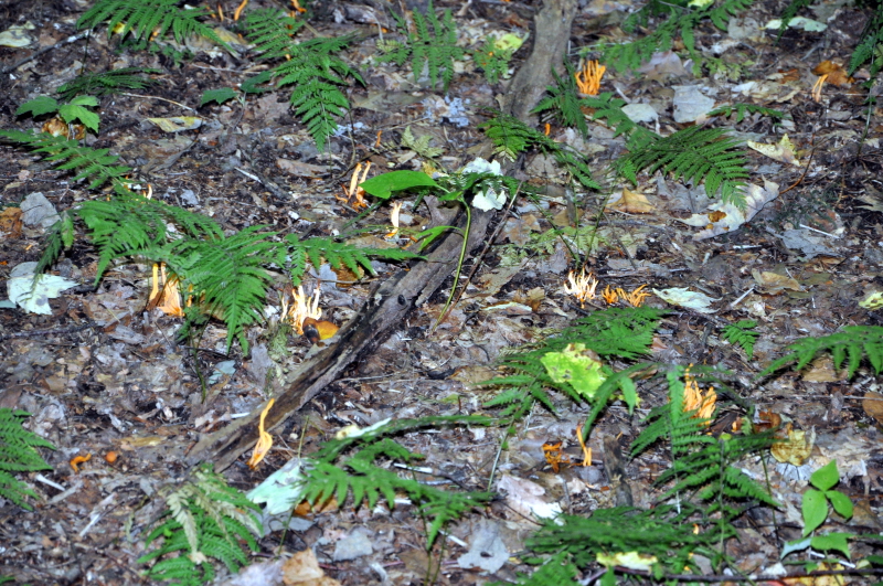 A closer review of the ravine with a deadfall that has fallen across and is about 400+ feet parallel to the Big Bend Bridge to give you an idea of the terrain. Here are more of the fungi we found as we traversed the area on the way back. |