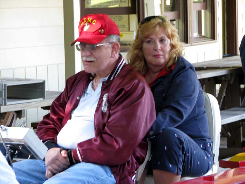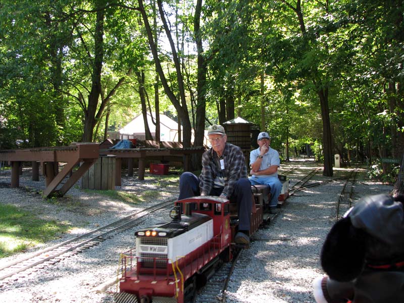 Mark adding fuel to the Galloping Goose so he can run it a few more trips before our chicken cookout shortly. Some of the members still running will start to put their equipment away because we have a club meeting after the cookout. |