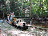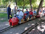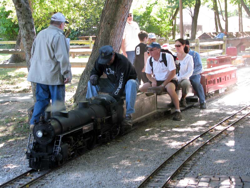 Joe looks deep in thought as though pondering if he can get another run in. The Deptowicz family, John, Amy and Ethan taking the Snoopy train around once more to turn the train around for the storage barn. |