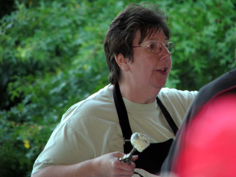Another shot of those in line being served and the flower decorations on the tables that were provided by Mike and Roberta Uhrich. Another picture taken towards the extreme right of the pavillion. |