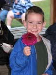 Robbi answering questions and serving food all at once was able to keep up with with the diner's requests. Thomas Ridler shows off one of the flowers with a big smile. |