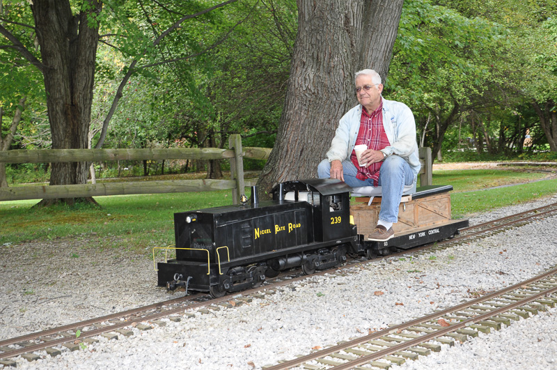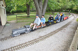 Don Speidel slows his train as he rolls into the station with Logan and guests aboard the train. A picture as they pass by the photographer before Don stops directly in front of the station. Not much activity today. |